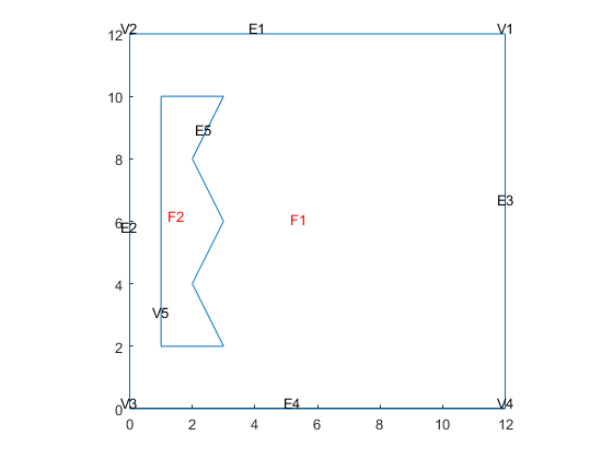 pdegplot(model_quad, 'EdgeLabels','on','VertexLabels','on', 'FaceLabels','on' )